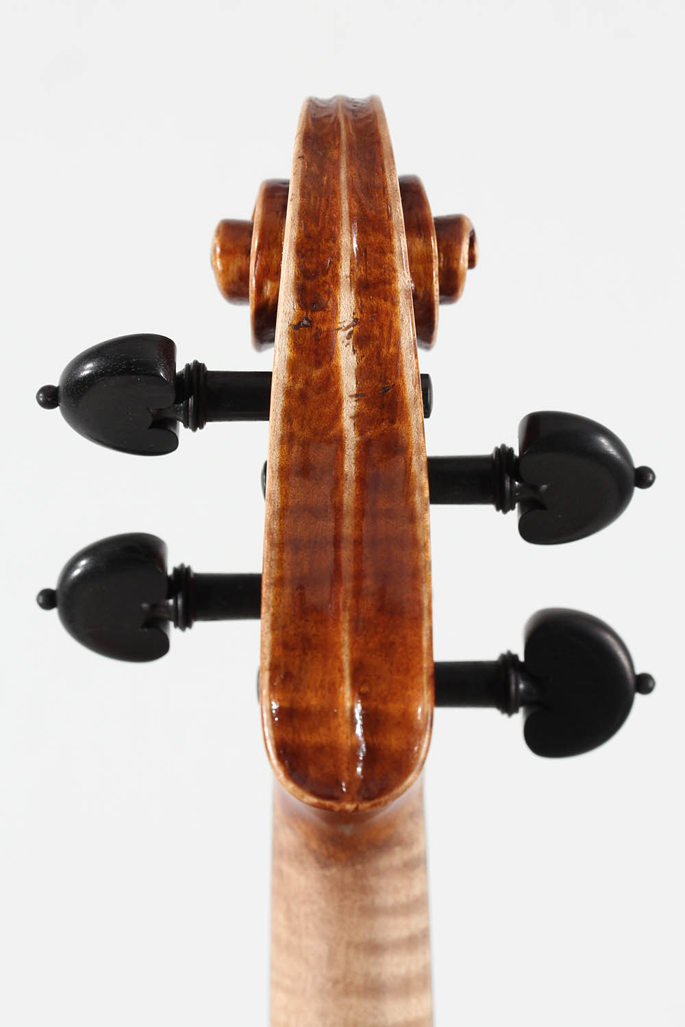 Violine mit dem klangvollen Namen Accademia, hergestellt im Jahr 2015. Sie besitzt einen einteiligen Ahornboden mit auffälligen Flammen. Die Fichtendecke weist eine gleichmäßige und starke Maserung auf. Der Lack ist in einem gold-orangen Farbton gehalten. Diese Violine zeichnet sich durch einen großzügigen Klang mit vielen Obertönen aus.